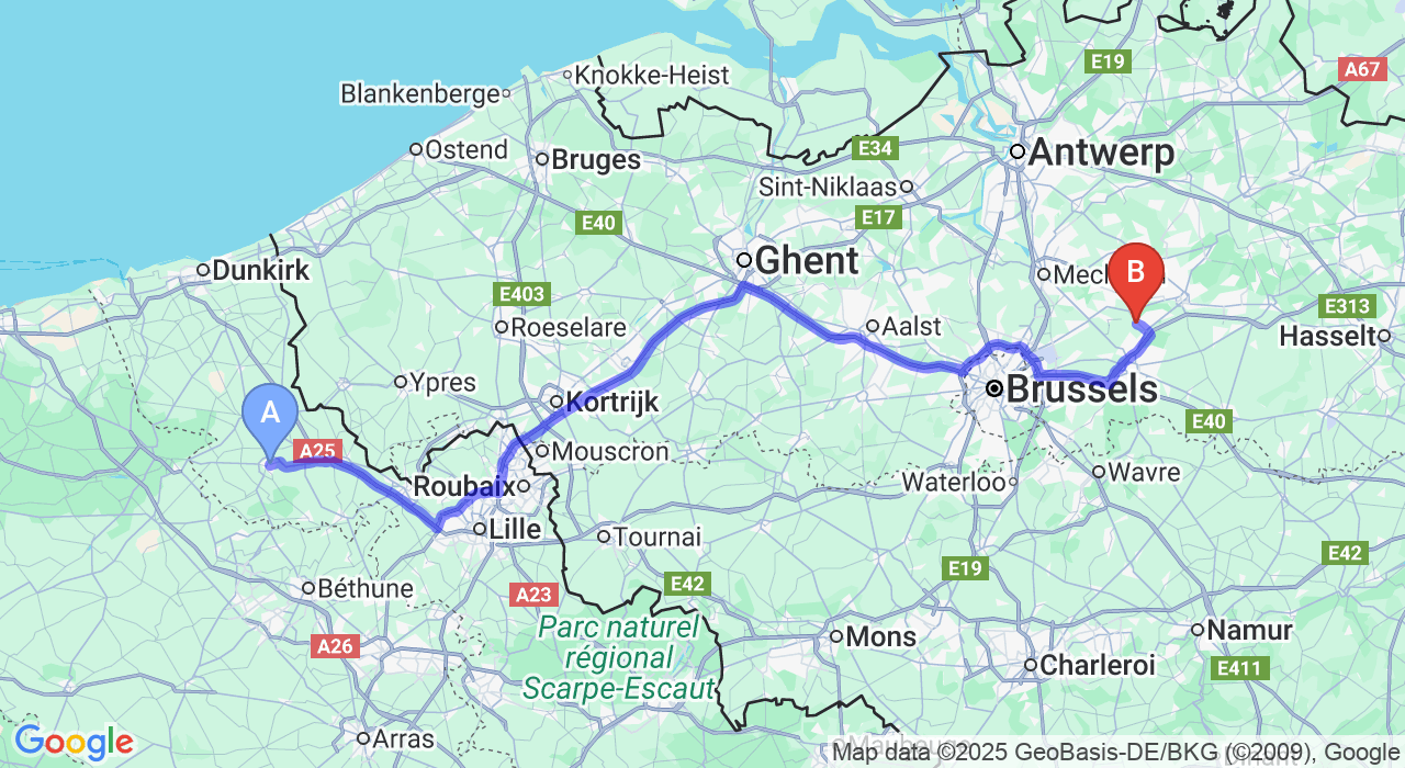 Bonjour, le but est de transporter la voiture de Hazebrouck au contrôle technique de Rotselaar (Belgique) pour mardi 9/12/2025 à 14h30 (rdv fixé mais modifiable). Ensuite, une fois le contrôle technique effectué, le but est de transporter la voiture à Wezembeek-Oppem (Belgique également - à 25km de Rotselaar). Je vous remercie, bien à vous, Adrien Dumont 0485 42 38 68